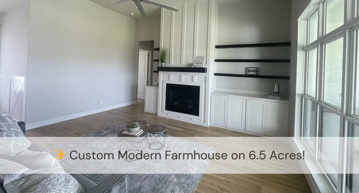 A custom-built modern farmhouse on 6.5 acres β where rustic charm meets modern comfort! From the open-concept kitchen and cozy fireplace to the professionally landscaped yard, every detail of this home was designed for warmth, style, and functionality.
