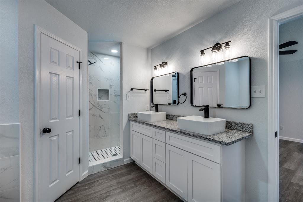 Fully remodeled home inside and out! Large living area with high vaulted ceiling and beautiful wood center beam. Updated kitchen with granite countertops and new stainless steel appliances. Large master downstairs with full master bath suite with fully updated bath, granite countertop, dual sinks and tiled shower. 2 more guest rooms downstairs and full guest bath. Upstairs features a full guest bath and two more guest rooms. Oversized backyard with a massive work shop/storage shed.