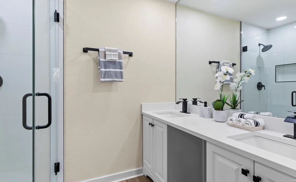 🛁 Walk-in shower + double vanity