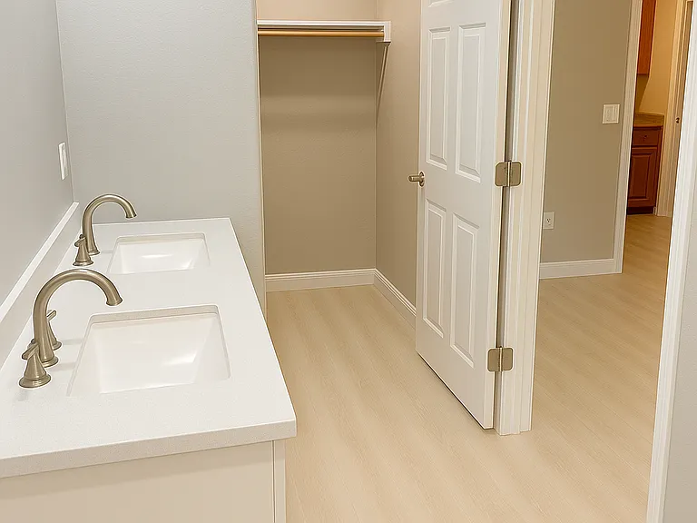 🛁 Spacious master suite with walk-in closet, dual vanity & walk-in shower