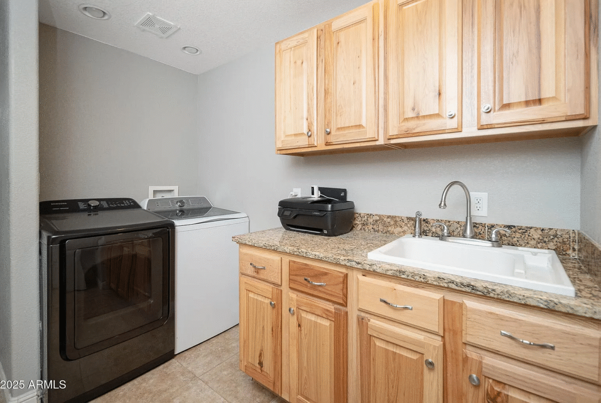 🧺 Laundry room includes washer & dryer, plus extra cabinets and a wash basin 🙌