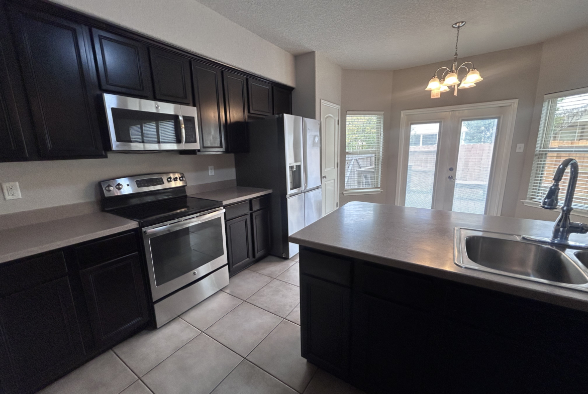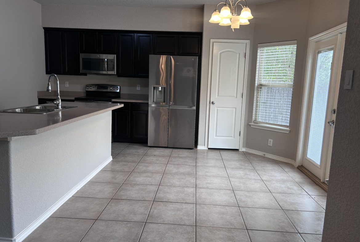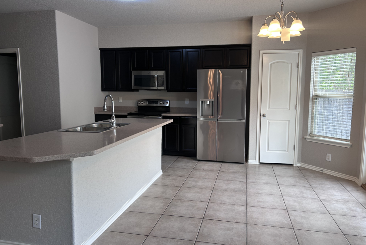 Inside, youโll find a spacious layout with 3 bedrooms and 3 bathrooms across 1,562 square feet. The large living room features beautiful wooden flooring, creating a warm and inviting space to relax or entertain. The kitchen is designed to impress with a center island, stainless steel appliances, and a brand new chandelier that adds a modern touch to the breakfast area.
