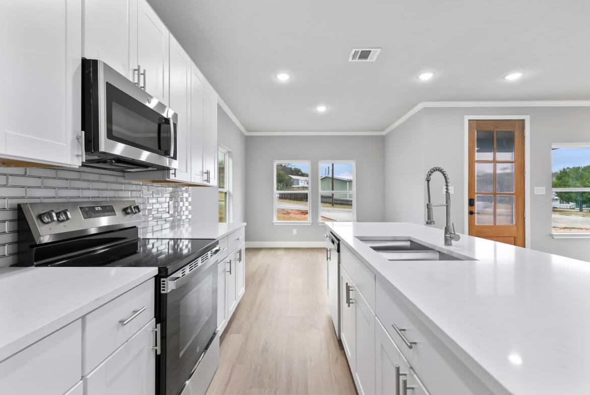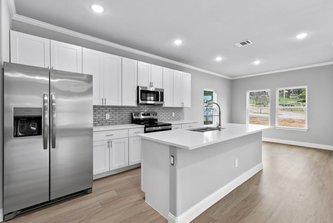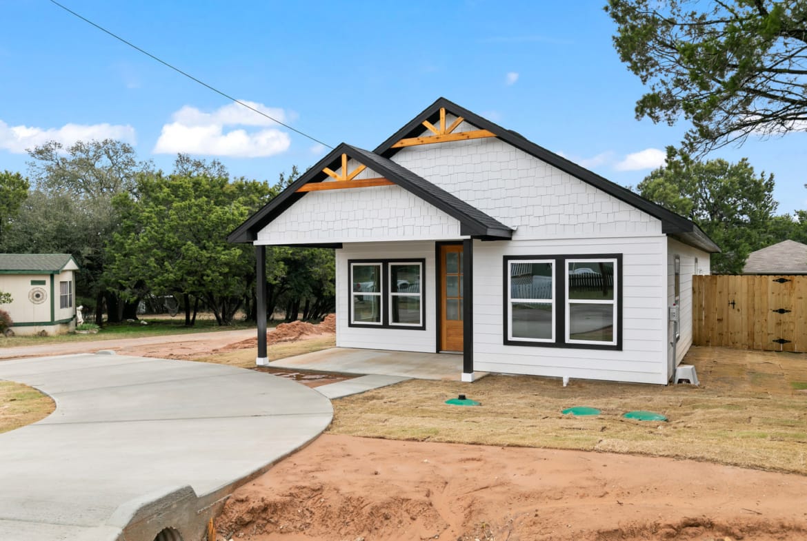 This brand new home sits on a LARGE corner lot with a circular drive. Gorgeous open modern plan situated in the Comanche Harbor community with EXCLUSIVE access to Lake Granbury. 9 foot ceilings make this home feel much bigger and open. Top of the line kitchen appliances kitchen includes quartz countertops, custom backsplash and stainless steel appliances. Kitchen is open to the living area with an island which makes for perfect entertaining.