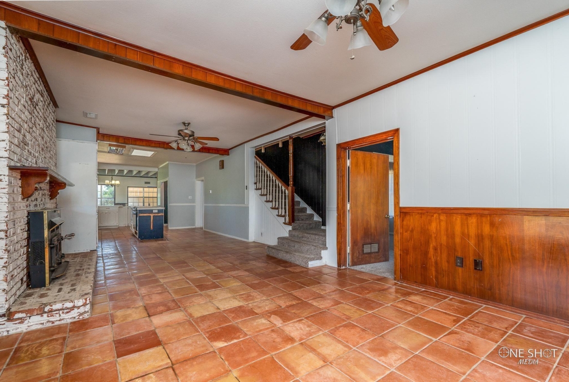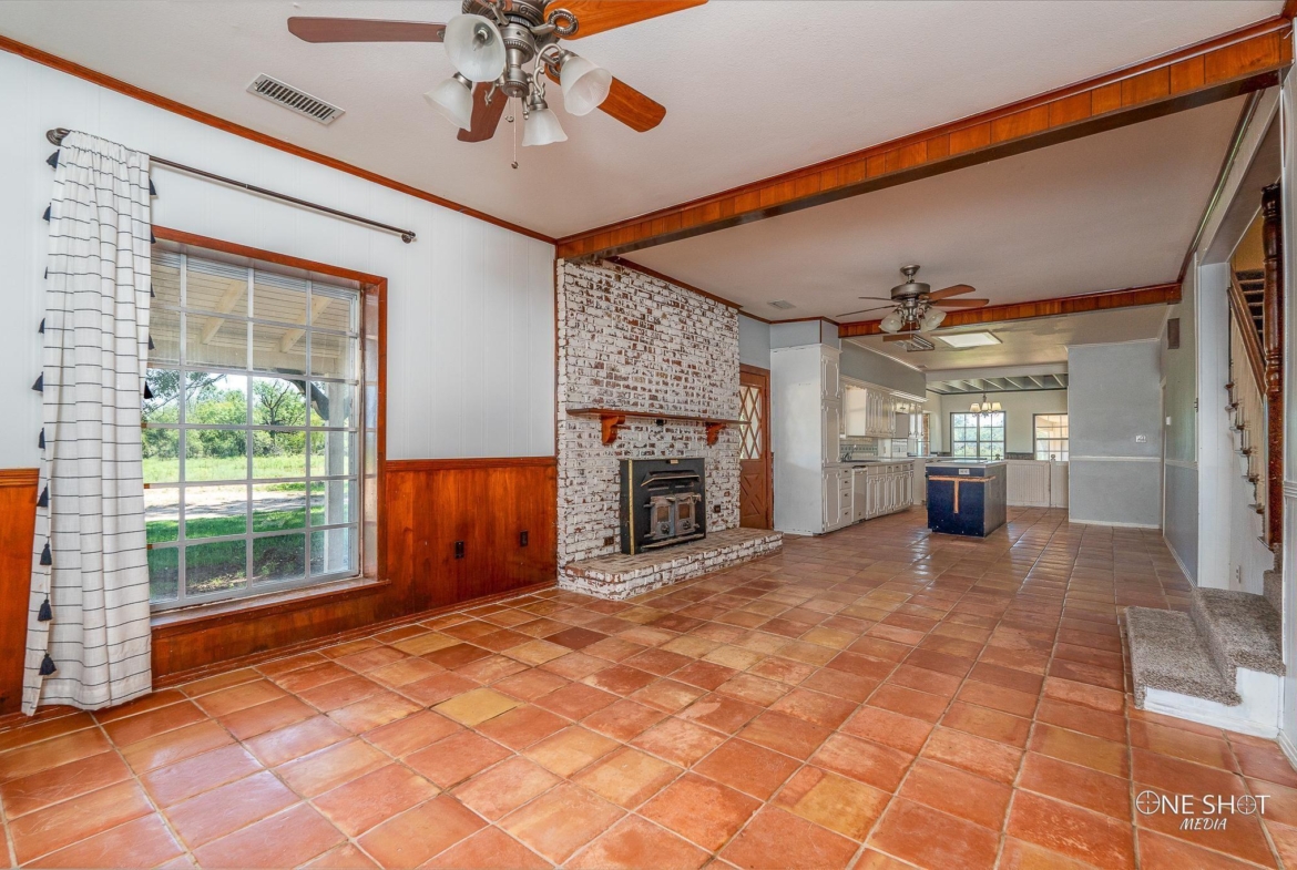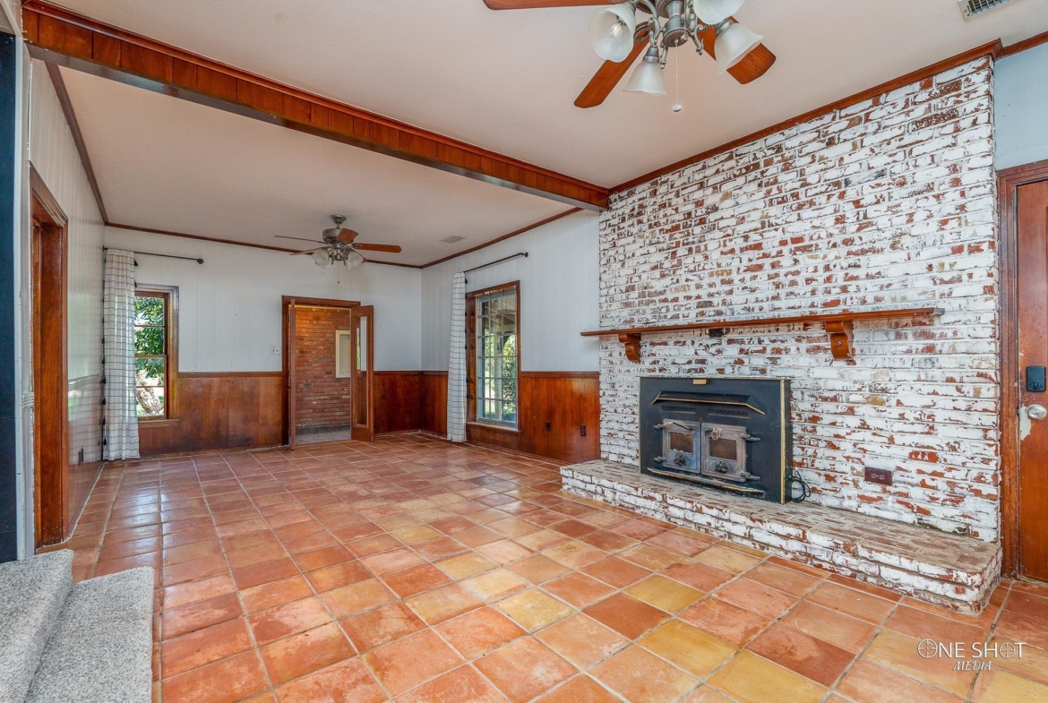 Spacious ranch layout with cozy brick fireplace