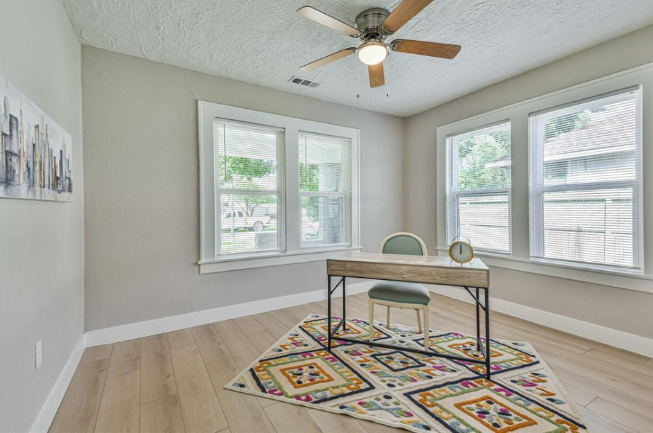 This fully renovated 1930s bungalow home offers 3 bedrooms, 2 baths, and multiple living spaces designed for family.
