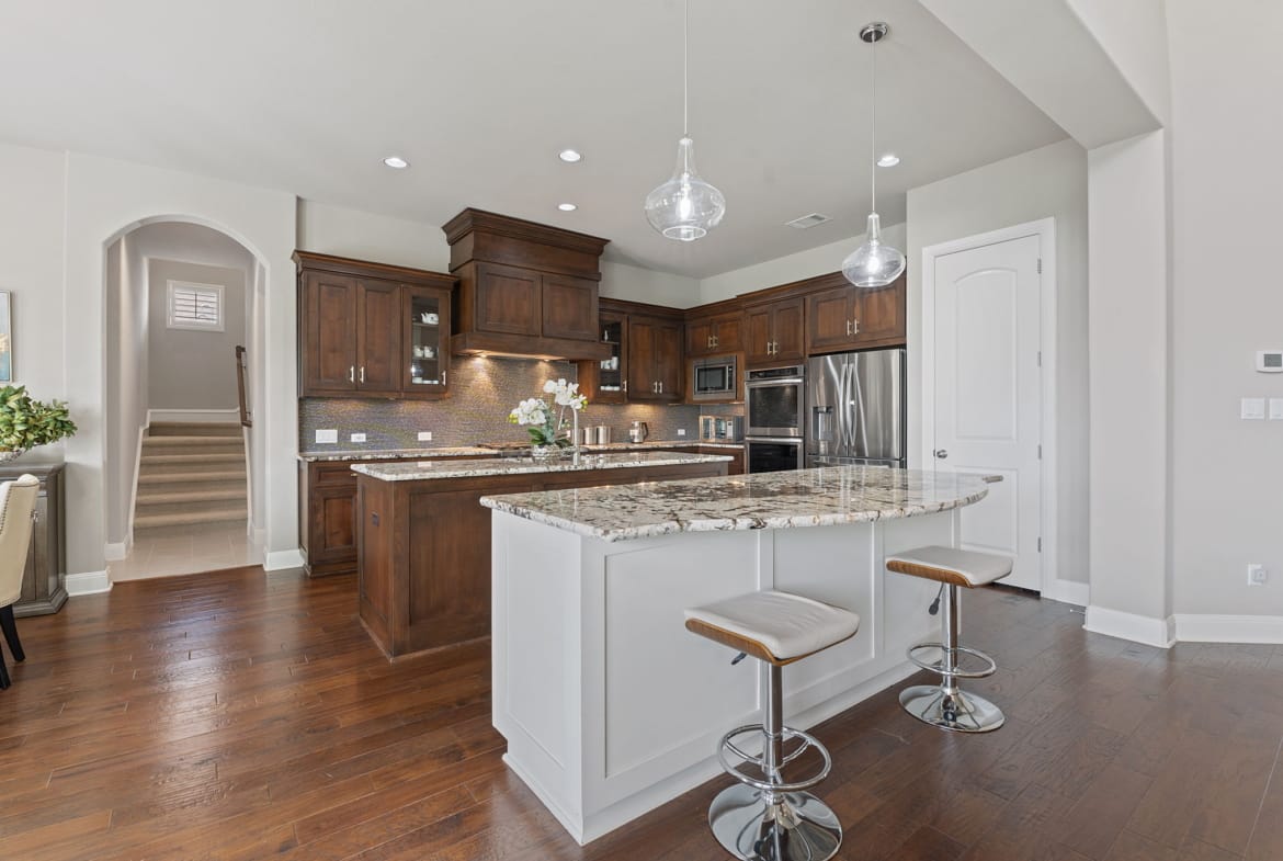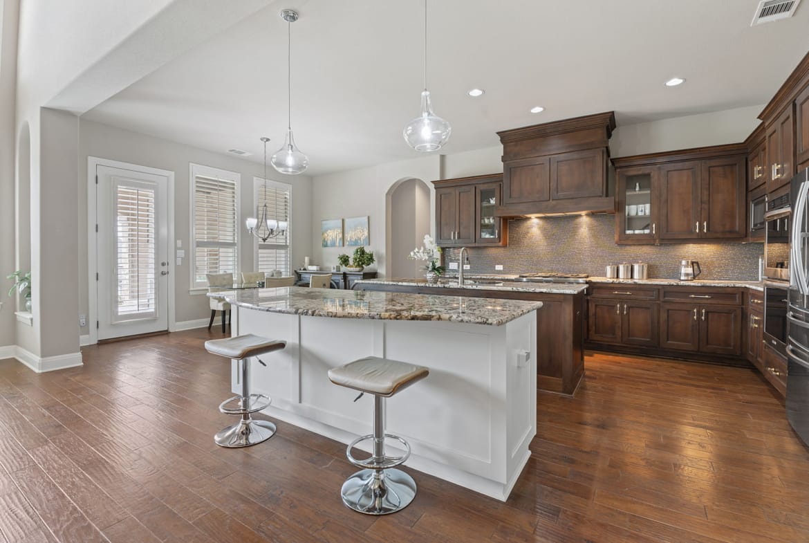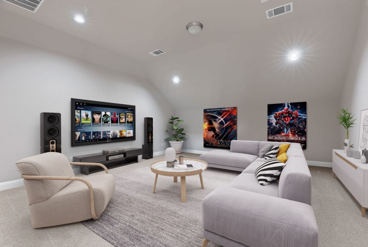 Equipped with an open spacious living area viewable from the kitchen, dining room and kitchenette. A formal office, and a chef’s kitchen with double islands, this home is perfect for both relaxation and entertaining. The upper level features a media room and a large game area, ideal for large gatherings.