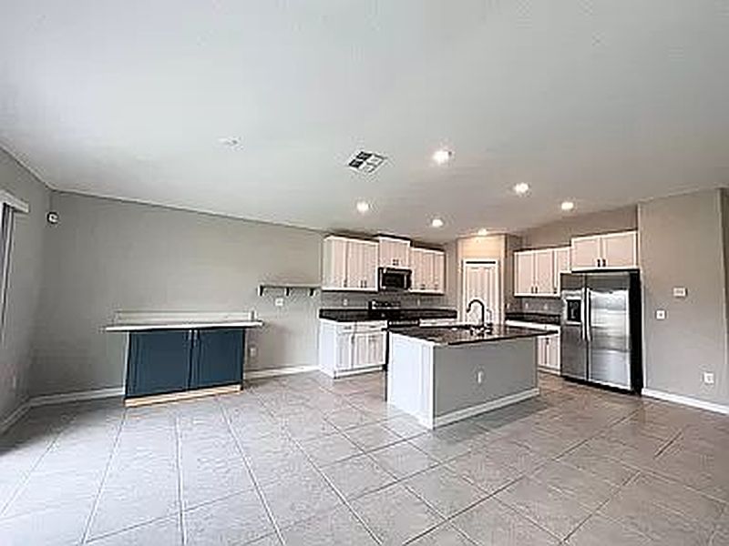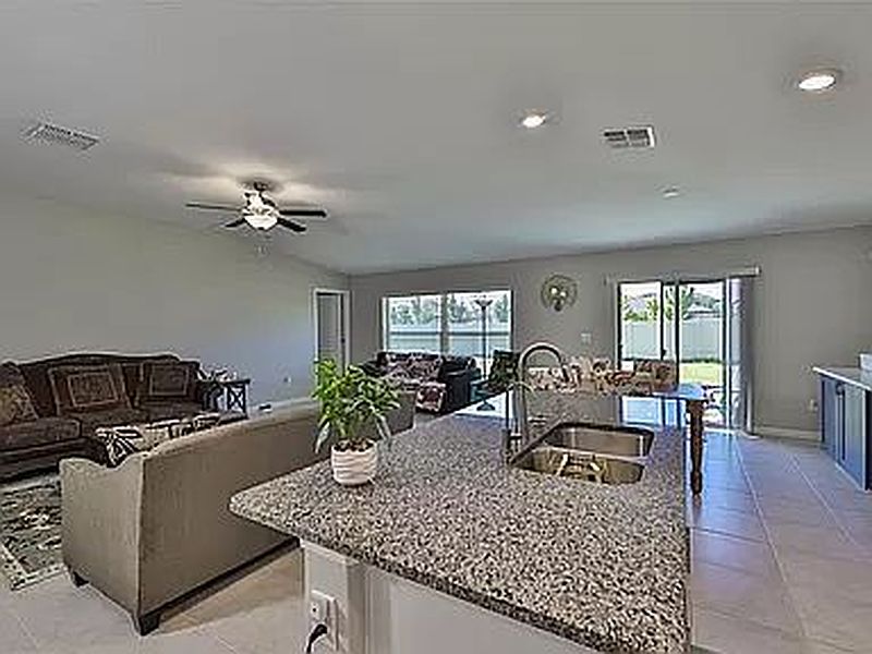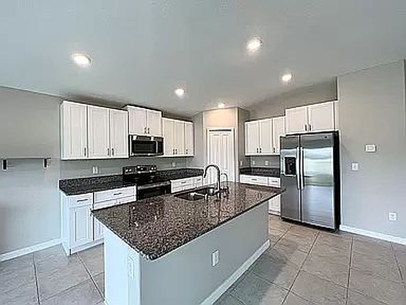 • A large island with granite countertop and under-sink reverse osmosis (RO) system