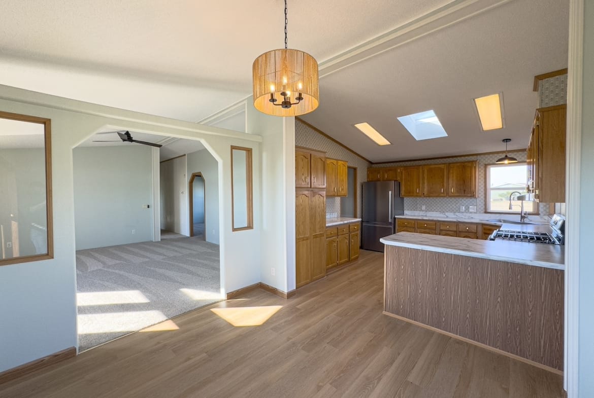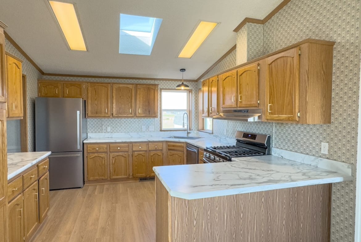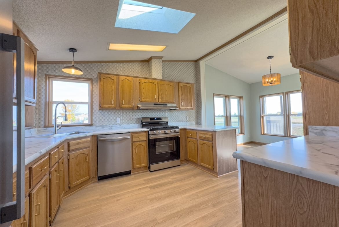 Newer roof, new flooring, new appliances, new water heater, new countertops, sink and lighting!