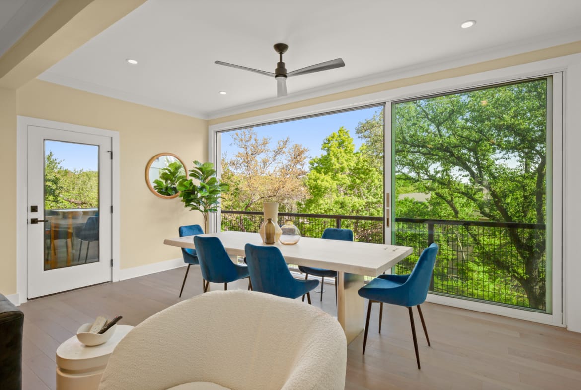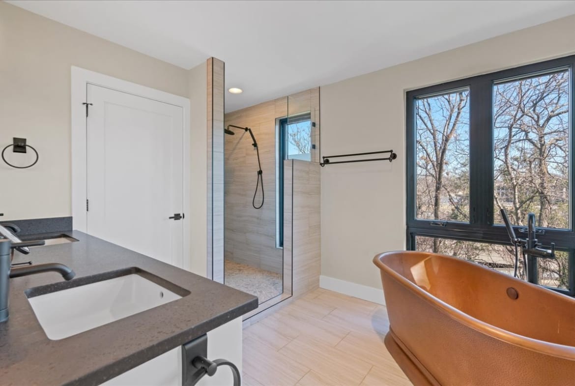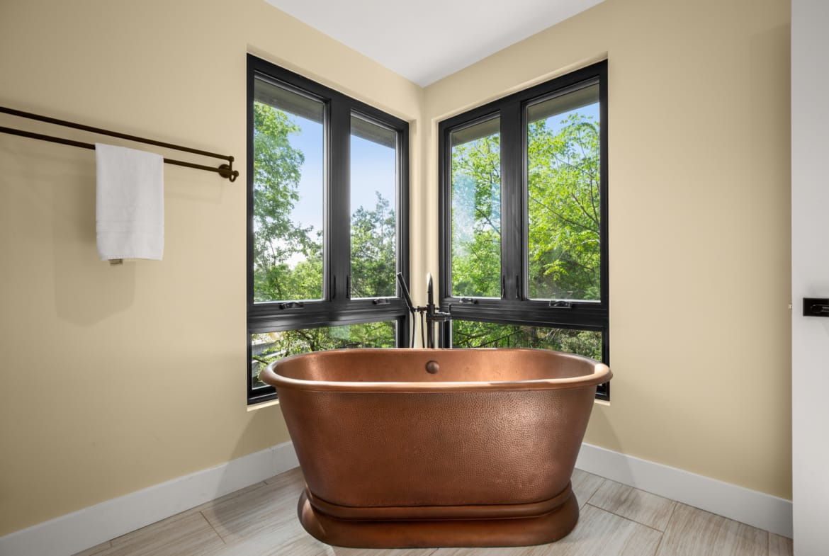 Secluded modern hideaway that feels like a personal retreat while being close to everything downtown Austin has to offer. Has an elevator, copper bathtub, elevated ceilings and oversized owners suite. Laundry room on each floor and a relaxation nook on the garage level. 0.2 miles from I-35.