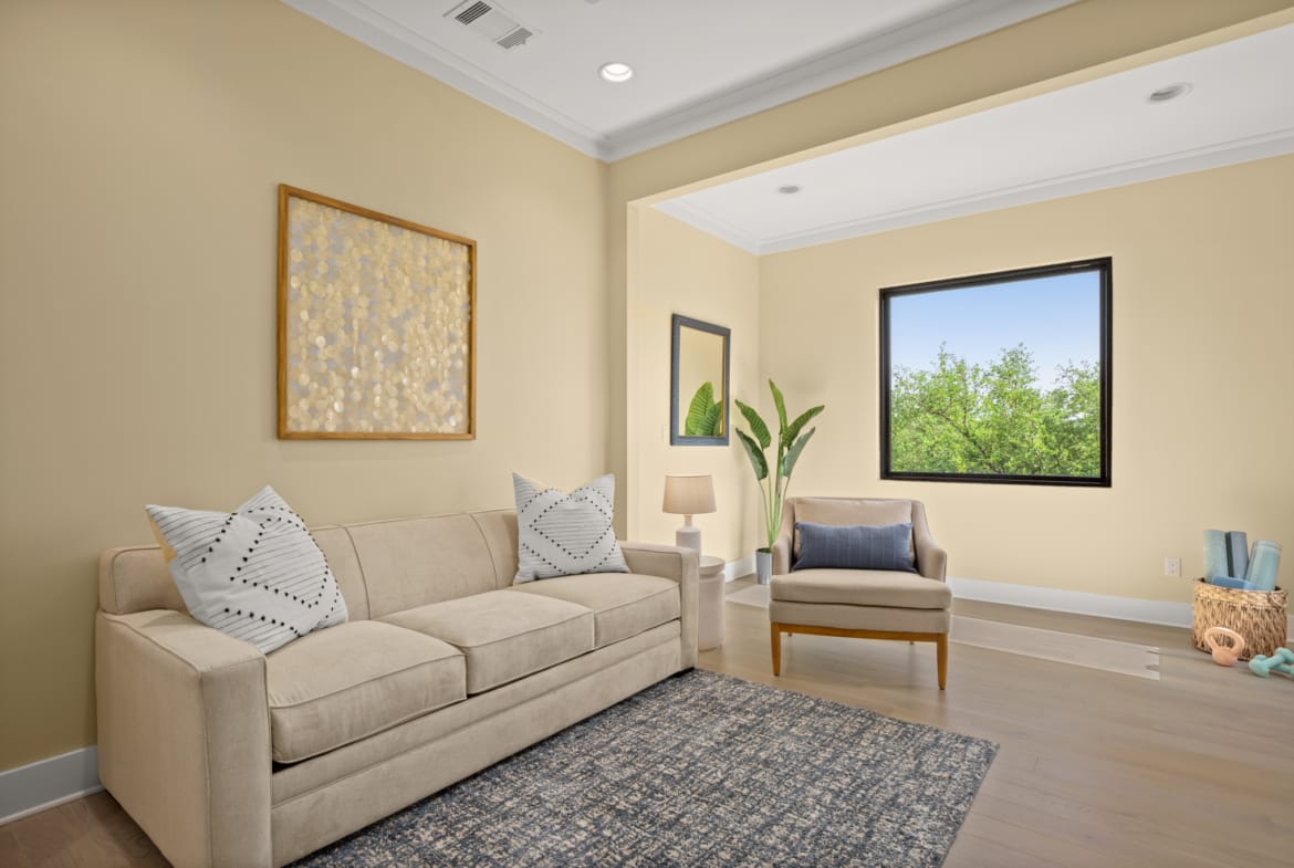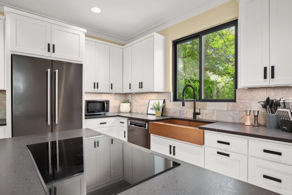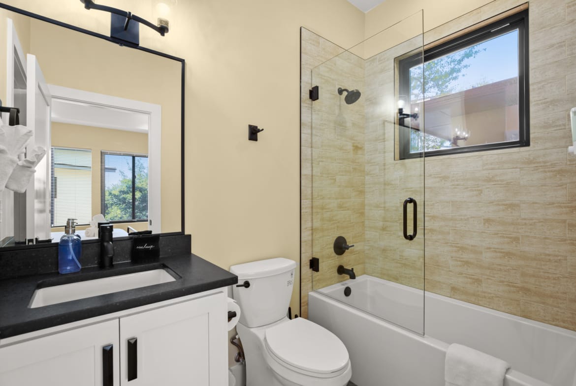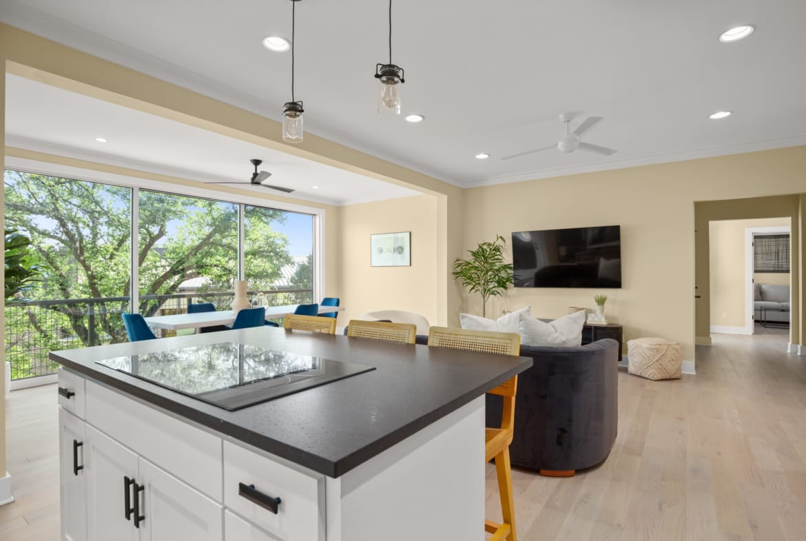 Secluded modern hideaway that feels like a personal retreat while being close to everything downtown Austin has to offer. Has an elevator, copper bathtub, elevated ceilings and oversized owners suite. Laundry room on each floor and a relaxation nook on the garage level. 0.2 miles from I-35.
