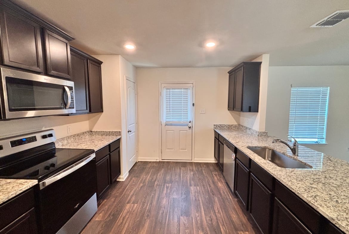 Beautiful home! This home features granite countertops in the kitchen and bathrooms, along with stainless steel appliances. The open kitchen format leads into the living area, and the primary bedroom offers ample closet space. You’ll also find a big, fenced backyard complete with a stone walkway to a sitting area. Big 2 car garage! Super nice home built in 2021!